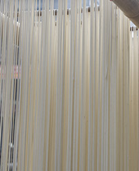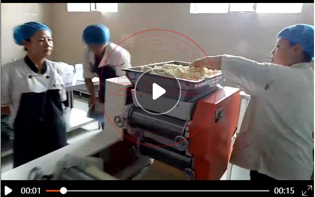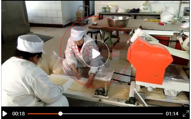 通過拌面機拌好的面絮,放入面條機內,通過多組壓面軸,連續壓面成面片進入刀口,生產出不同規格的面條,圓面條,扁面條,方型面條,菱形面條,刀削面,方形面片等。