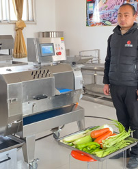切菜機具備雙調(diào)頻功能,一端是切葉菜類,如長蔥,蒜苗,韭菜,芹菜,白菜,青菜等,一端是切球根莖類,如蘿卜,土豆,紅薯,芋頭,筍,洋蔥,茄子,蘋果,生姜等。根莖部分可切片(厚薄度2-10毫米可選),根莖部分切絲(2-10mm方絲可選),根莖部分切丁(8mm,10mm,12mm,15mm,20mm),葉菜部分切段切條(長度1-90mm可調(diào)),具備雙調(diào)頻功能。